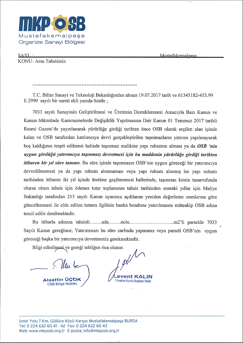 Yatırımını gerçekleştiremeyen katılımcılarımıza yatırımını 1 (bir) yıl içinde yapmaları veya yeni bir yatırımcıya DEVİR hakkı tanınmıştır. Konuyla ilgili olarak Bakanlıktan alınan ve katılımcılarımıza yazdığımız yazılar aşağıda sunulmuştur.